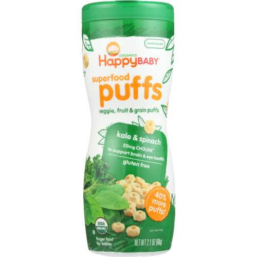 Dusted with kale and spinach powders, enriched with vitamins and minerals, and lightly sweetened with real fruit juice concentrate, our puffs melt in Baby’s mouth and encourage self feeding. They may buy Mom and Dad some quiet time, too!
