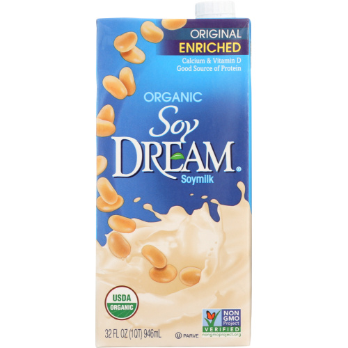Wholesome and delicious Soy DREAM Enriched Original Organic Soymilk is the ideal plant-based alternative to dairy. This certified organic soymilk delivers 7 grams of non-GMO soy protein and as much calcium as cow's milk.* It's also enriched with vitamins B12, D & E. Try it on cereal, in your favorite recipe or simply by the cold and refreshing glassful.