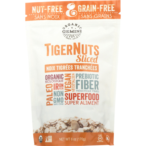 Organic Gemini Organic TigerNut Raw Snack Sliced have a sweet and slightly nutty flavor. They are known throughout the world by different names, including nookon or chufa. A TigerNut by any name, however, is a little tuber with a great deal of superfood qualities. All of the health benefits and flavor of TigerNuts, but in thin wafers that are easy to chew. They taste great on top of salads or yogurt, as an addition to breakfast cereals, or in baked goods.