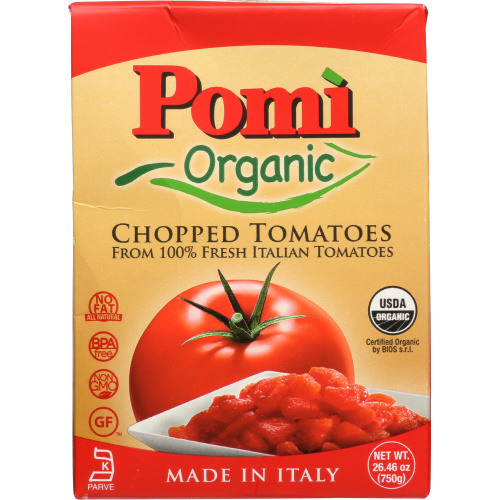NEW! Pomì Organic Chopped Tomatoes is our new natural tomato product. Perfection is simple: The extraordinary flavor of Italian organic tomatoes and our passion, combined! Try Pomì Organic Chopped in your favorite dishes. Perfectly suited for every recipe. It is grown to impress, naturally.