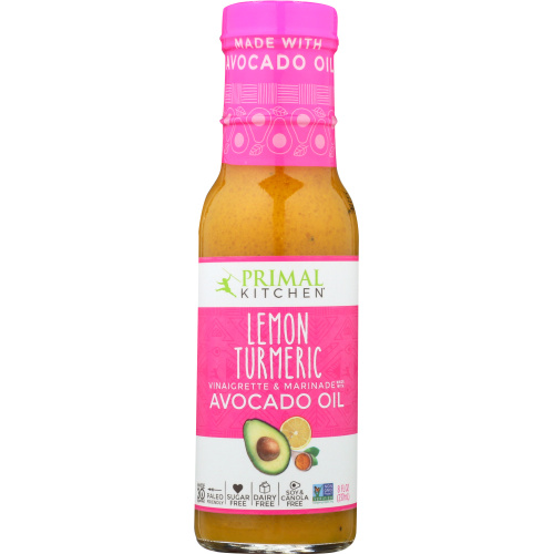 Meet Primal Kitchen's Lemon Turmeric Dressing made with Avocado Oil—a nourishing primal delight with a deliciously diverse flavor profile. Infused with avocado oil containing monounsaturated fats, organic apple cider vinegar, and organic turmeric, this spicy, sweet, and sour dressing is packed with premium ingredients that promote optimal health and wellness. Free of gluten, soy, sugar, dairy, this dressing is Non GMO-Project Verified and primal to the core. Whether you're a spice lover or simply looking to upgrade your culinary experience, our Lemon Turmeric is our secret weapon for transforming salads, veggie rolls, and sushi creations into delectable masterpieces made with clean, simple ingredients.