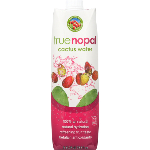 True nopal cactus water has a refreshing fruit taste and is 100% natural. it will hydrate your body with a combination of antioxidants and electrolytes with no added sugars, no preservatives, no gmo and it’s even vegan and gluten-free. in other words, it’s straight from the earth just the way it was intended to be. oh, btw, true nopal cactus water has about half the calories and half the sugar as the leading brand of coconut water. drink true…be true.