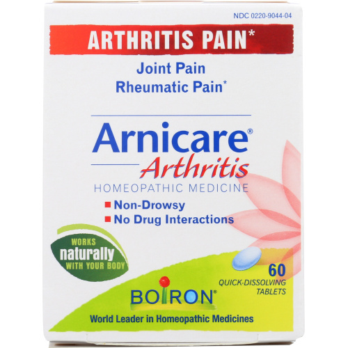 Boiron Arnicare Arthritis tablets offer those concerned about drug interactions and pre-existing conditions a choice in relieving minor aches and pains associated with arthritis, including joint pain and rheumatic pain.*
