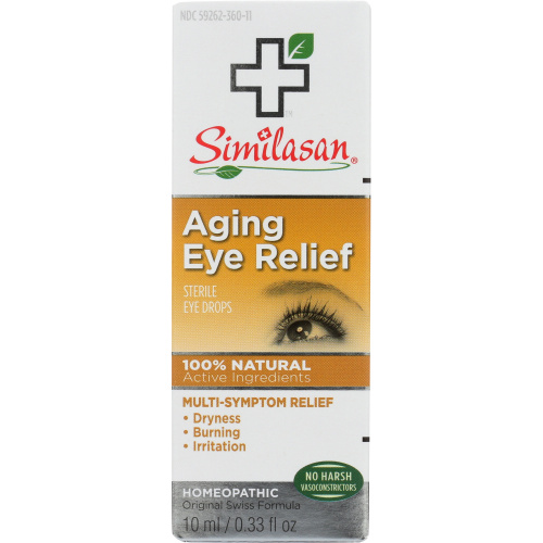 As we get older, it's not uncommon to suffer from problems such as corneal opacity and macular degeneration, which lead to cloudy or blurry vision. We all want our eyes to be as healthy as possible. Similasan Aging Eye Relief eye drops are specially designed to support corneal and macular health, and provide temporary relief for dryness which can occur as eyes age. Similasan eye drops are formulated with the natural botanical extracts Cineraria maritima to stimulate the body's natural ability to maintain a clear crystalline lens, and Herb-of-grace to temporarily relieve dryness, so you can get relief without harsh chemicals.