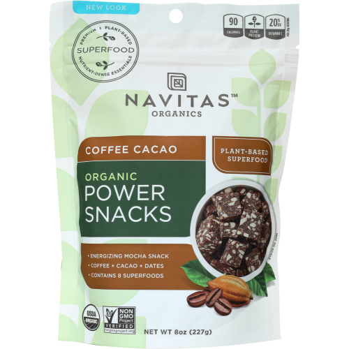 Enjoy Navitas Organics Coffee Cacao Power Snacks straight out of the bag or crumble them into yogurt, ice cream, cereal—even smoothies. They're also delicious on top of salads.