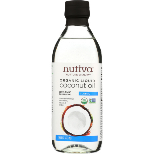 Nutiva Organic Liquid Coconut Oil is derived from our pure Organic Virgin Coconut Oil and contains concentrated levels medium-chain triglycerides. Medium-chain triglycerides are easily digested, provide energy and support the metabolism.* Using a USDA certified organic process, we extract the fats from virgin coconut oil that remain solid at room temperature, resulting in an oil that remains liquid, even at cooler temperatures. Unlike non-organic liquid coconut oil brands, there are no chemicals or filler oils used during this process, resulting in a clean, light coconut-flavored oil with no harsh aftertaste. Use our premium liquid coconut oil as an olive oil replacement or for cooking and baking up to 350°F. For savory recipes, try our liquid coconut oil infused with organic garlic.