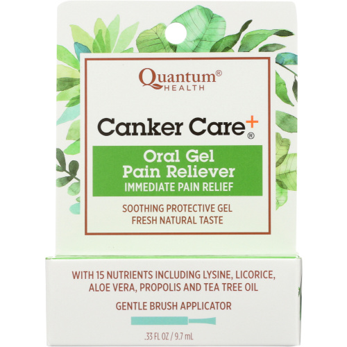 Canker Care+® Oral Gel Pain Reliever is an herbal/nutrient formulation that provides immediate pain relief. The soft natural brush allows for a gentle, pain-free application. The gel formula creates a protective barrier over the sore to encourage the natural healing process.