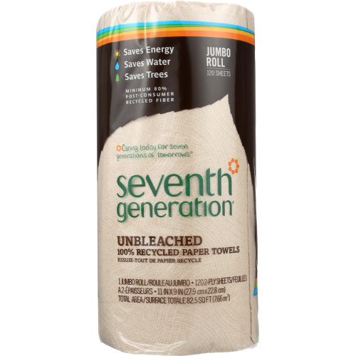 Seventh Generation Paper Towels are made from 100% recycled paper (80% post-consumer content, 20% pre-consumer content). Brown color paper towels are unbleached
